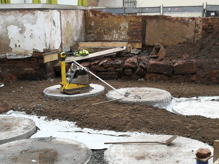 Brunnentiefengründung mit Schachtringen mit einer Tiefe von 6,0 m und einem Durchmesser von 2,0 m.